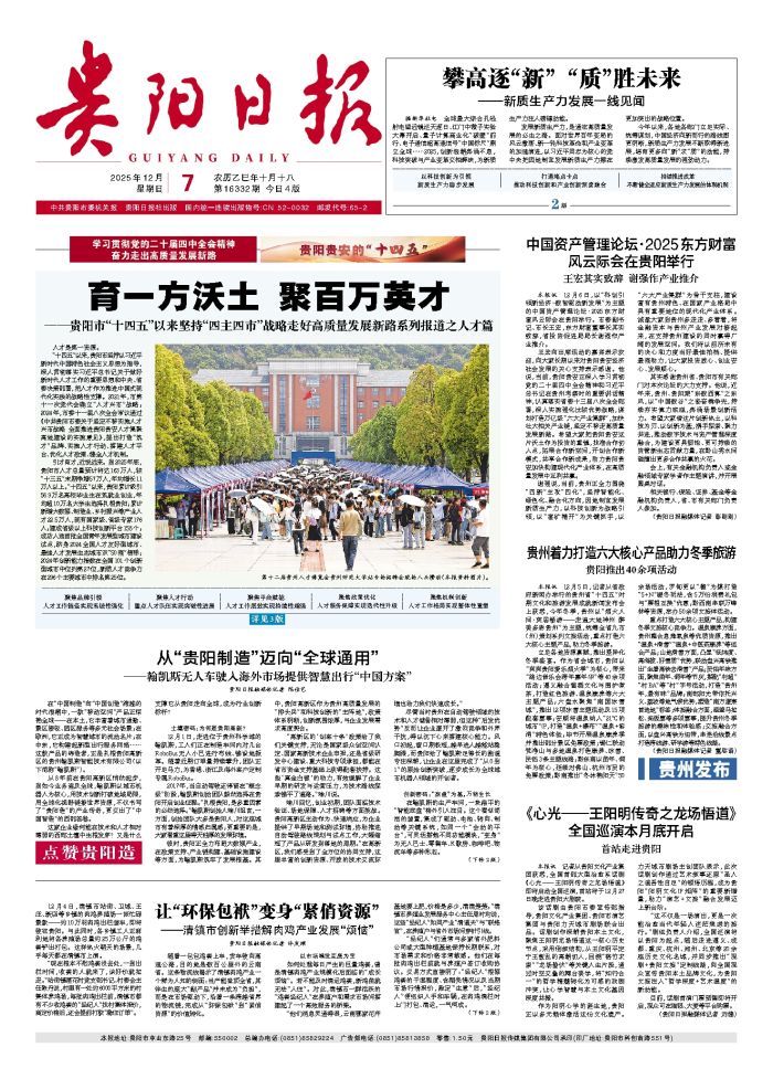 本报讯 12月6日,以“科创引领新经济·数智驱动新发展”为主题的中国资产管理论坛·2025东方财富风云际会在贵阳举行。市委副书记、市长王宏,东方财富董事长其实致辞,省投资促进局局长谢强作产业