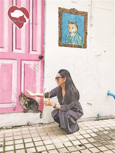 在泰国碧武里府河畔社区,小巷里充满魅力的街头艺术画随处可见,吸引不少游客前来参观打卡。