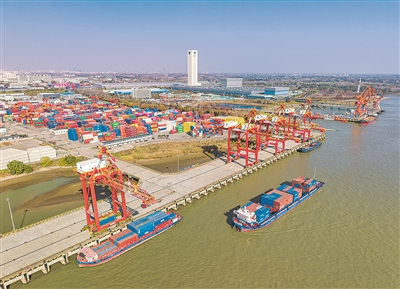 12月8日拍摄的江苏省扬州港(无人机照片)。 新华/传真