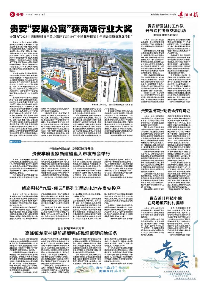 本报讯 12月4日,在2025中国住房租赁产品力峰会上,贵安新区人才安居品牌“安巢公寓”凭借卓越的产品实力与创新的服务模式,一举斩获两个行业奖项。其中,安巢·月熙公寓、安巢·云柏公寓双双入选