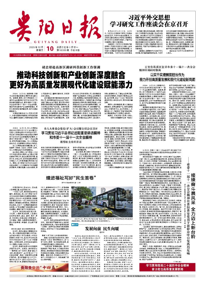 贵阳日报融媒体记者 梁婧 黄菊 罗凤琴 李雯文 姚方媛 易颖 12月8日,市委十一届十一次全会召开,审议通过了《中共贵阳市委关于制定贵阳市国民经济和社会发展第十五个五年规划的建议》。