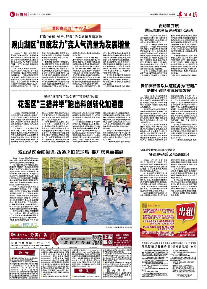 本报讯 “十四五”以来,观山湖区将演艺赛事作为促进文商体旅深度融合的核心抓手,着力打造“好玩、好听、好看”的文旅消费新高地,通过“四度”发力,实现人气“流量”转化为发展“增量”,并于今年入选