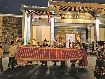 比如针对“初登第,得意回”石刻,结合徽州“十户之村,不废诵读”的科举传统,通过真人演绎方式重现古代文人高中进士庆祝游街的盛景。