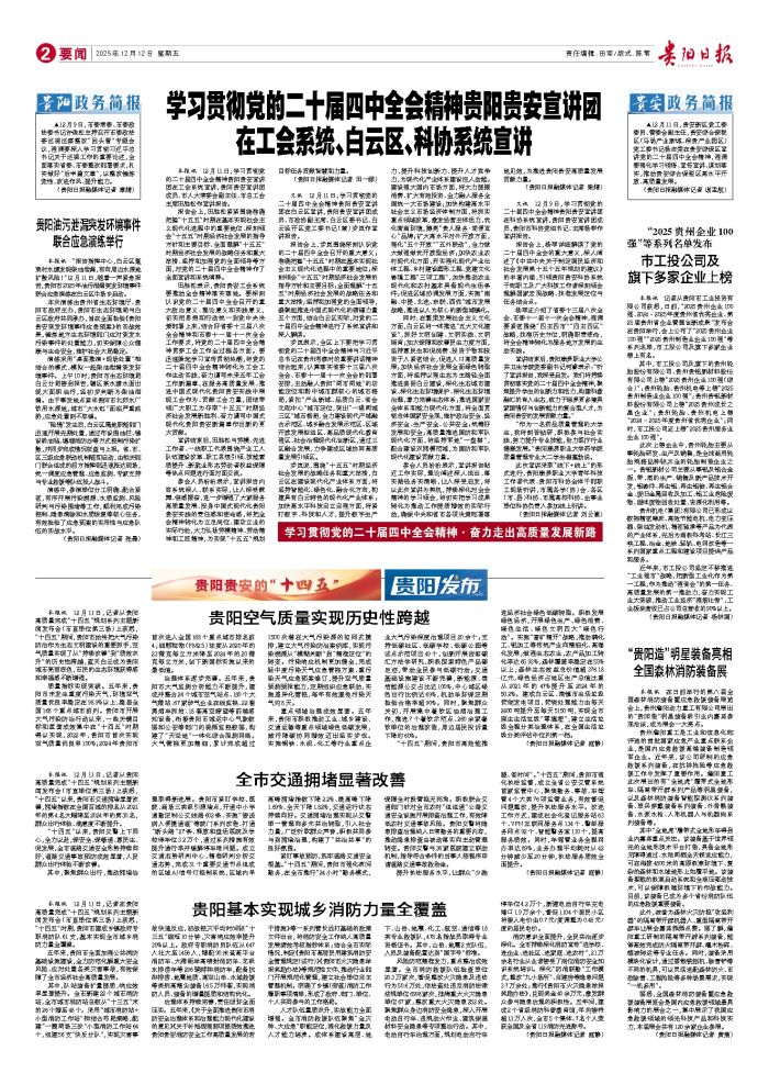 本报讯 12月11日,记者从贵阳高质量完成“十四五”规划系列主题新闻发布会(市直单位第三场)上获悉,“十四五”期间,贵阳市始终把大气污染防治作为生态文明建设的重要抓手,空气质量实现了从“持续