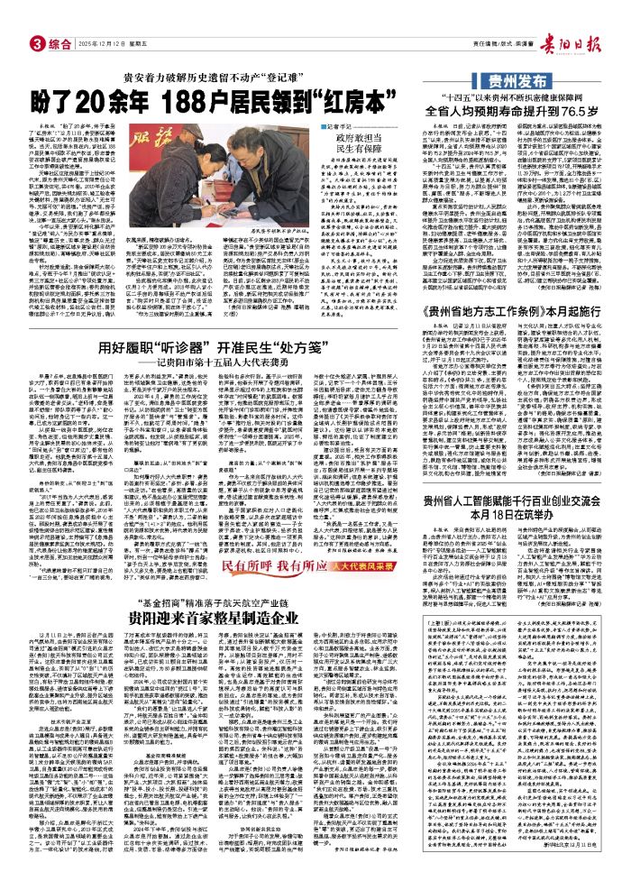 本报讯 记者12月11日从省政府新闻办举行的相关新闻发布会上获悉,《贵州省地方志工作条例》已于2025年9月29日经贵州省第十四届人民代表大会常务委员会第十九次会议审议通过,并于12月1日起