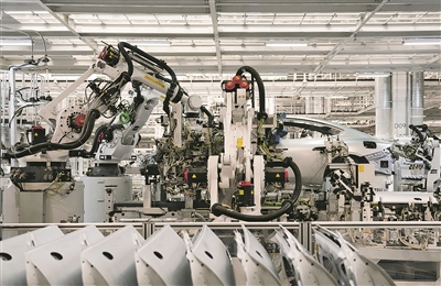 2025年6月16日,机器人在位于北京经济技术开发区的小米汽车工厂车间流水线上作业。