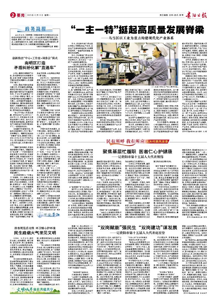 作为医院负责人,她狠抓精细管理,持续改进服务质量,不断优化患者就医体验;作为市人大代表,她积极履行代表职责,为维护人民群众合法权益、促进社会事业发展建言献策。她,就是贵阳市第十五届人大代表、云