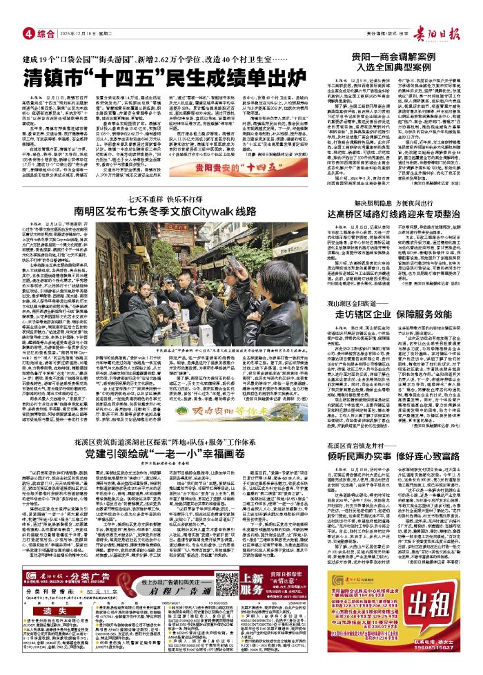 清镇市有关负责人表示,“十四五”时期,清镇坚持民生优先,推动民生事业实现跨越式发展。下一步,将继续聚焦群众急难愁盼,补齐短板、提升服务,努力建设更加宜居、便捷、温暖的城市,为“十五五”民生高质量发展奠定坚实基础。