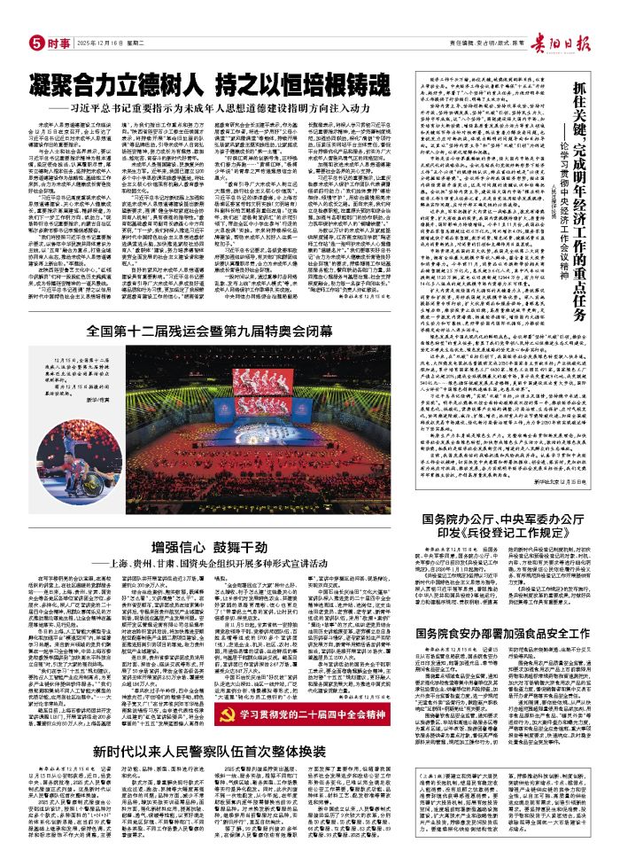 人民日报评论员 经济工作千头万绪,抓住关键,就能做到纲举目张,以重点带动全局。中央经济工作会议着眼于确保“十五五”开好局、起好步,部署了“八个坚持”的重点任务,为做好明年经济工作提供了行