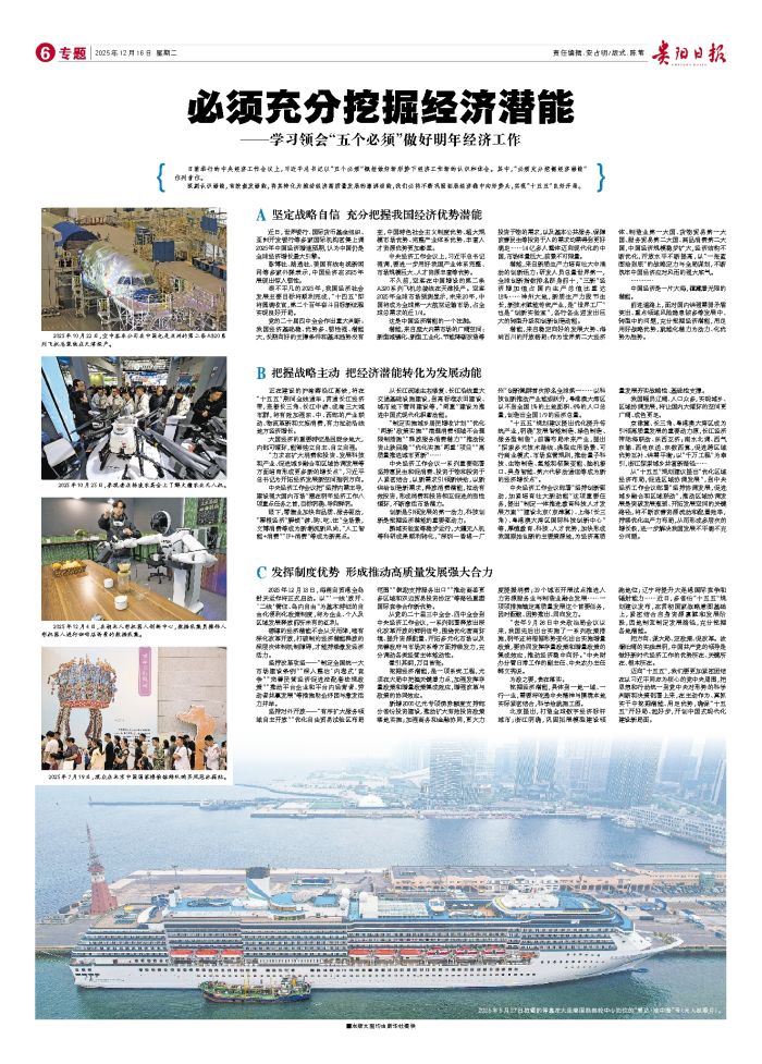 日前举行的中央经济工作会议上,习近平总书记以“五个必须”概括做好新形势下经济工作新的认识和体会。其中,“必须充分挖掘经济潜能”位列首位。 深刻认识潜能,有效激发潜能,将其转化为推动经济高