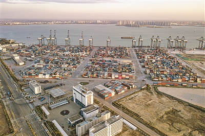 在海南洋浦经济开发区拍摄的洋浦港口岸,其既是海南自贸港8个对外开放口岸之一,又是10个“二线口岸”之一(无人机照片,2025年11月21日摄)。
