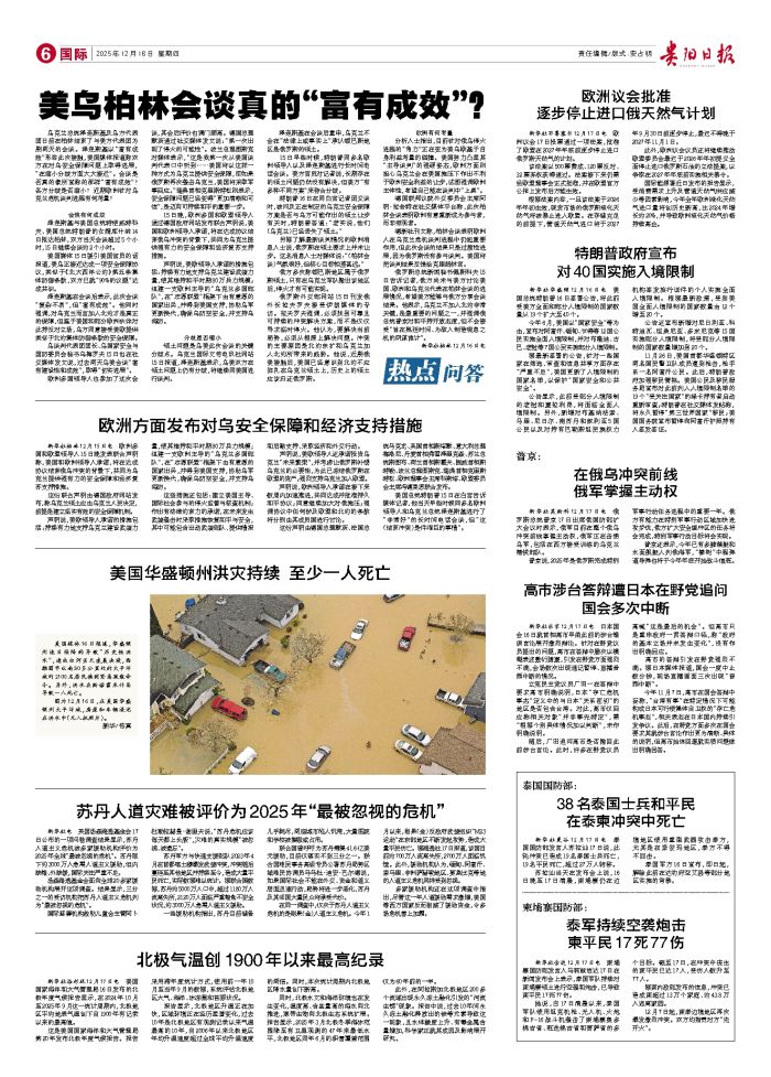 乌克兰总统泽连斯基及乌方代表团日前在柏林结束了与美方代表团为期两天的会谈。泽连斯基以“富有成效”形容此次接触,美国媒体报道称双方在对乌安全保障问题上取得进展,“在缩小分歧方面大大接近”。会谈是