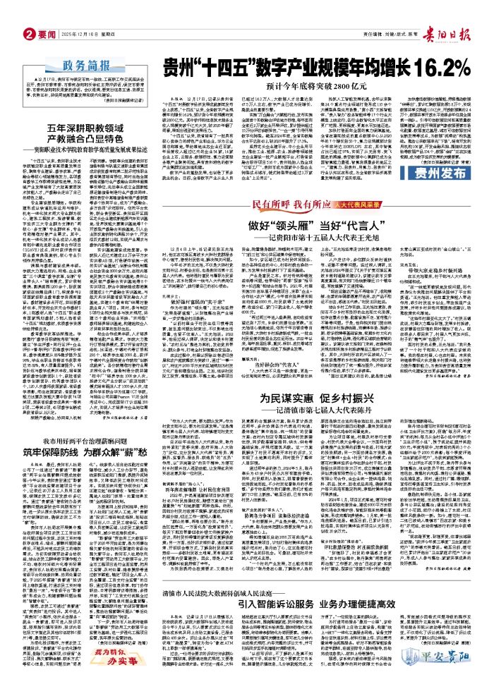 本报讯 12月17日,记者从贵州省“十四五”时期数字经济发展成就新闻发布会上获悉,“十四五”以来,全省数字产业规模年均增长16.2%,预计到今年底规模将突破2800亿元。其中软件和信息技术服