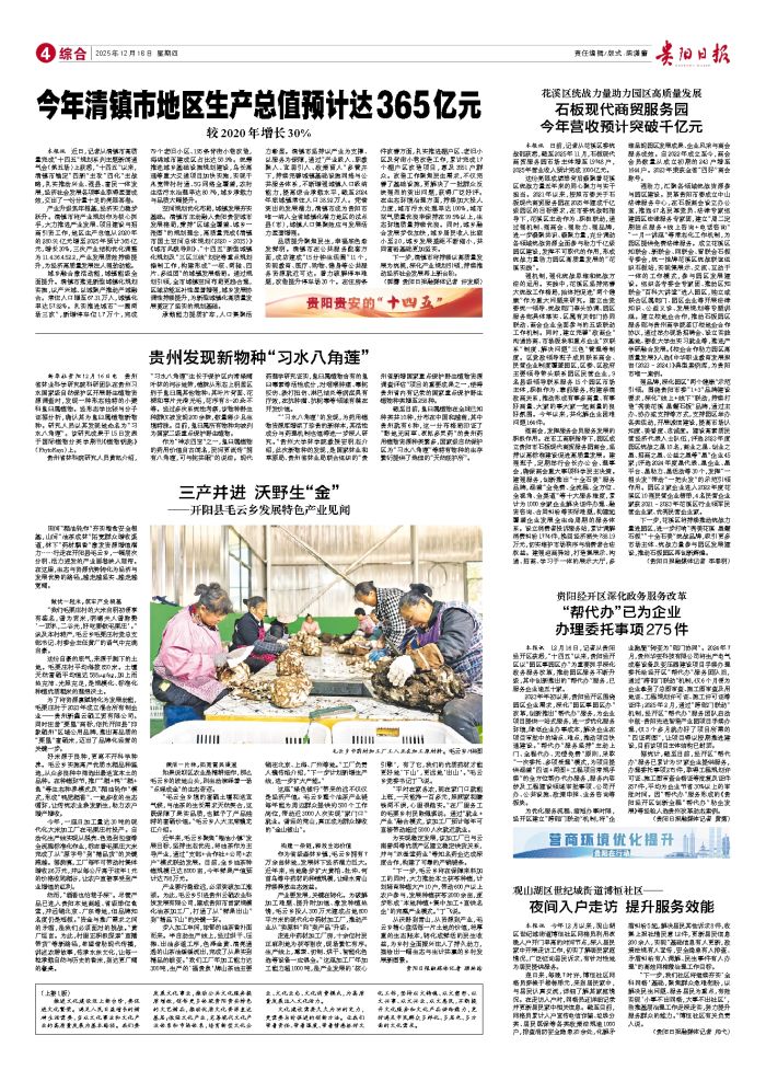 本报讯 12月16日,记者从贵阳经开区获悉,“十四五”以来,贵阳经开区以“园区事园区办”为重要抓手深化政务服务改革,推动园区服务不断升级,其中创新推出的“帮代办”服务,已服务企业逾五十家。