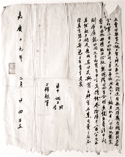 清嘉庆十九年姚上智、姚上锦兄弟二人卖田契 图片选自《清水江乡民家藏文书考释》
