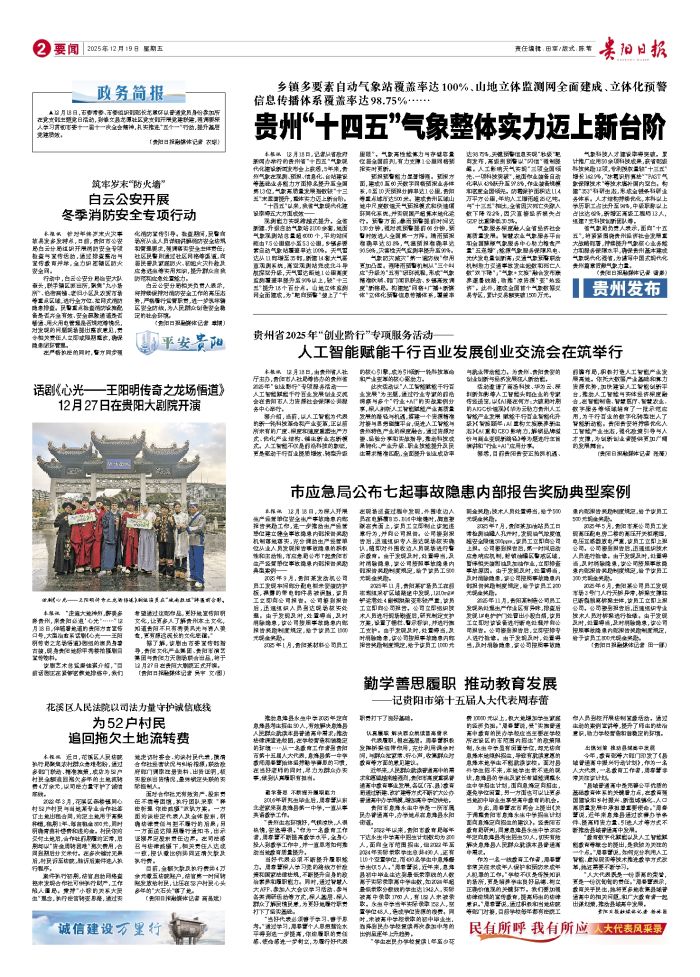 推动息烽县永生中学2025年定向息烽县考生招生50人,有效解决息烽县人民群众就读本县普通高中需求;推动法律课堂进校园,在学校营造和谐稳定的环境……从一名教育工作者到贵阳市第十五届人大代表,息烽
