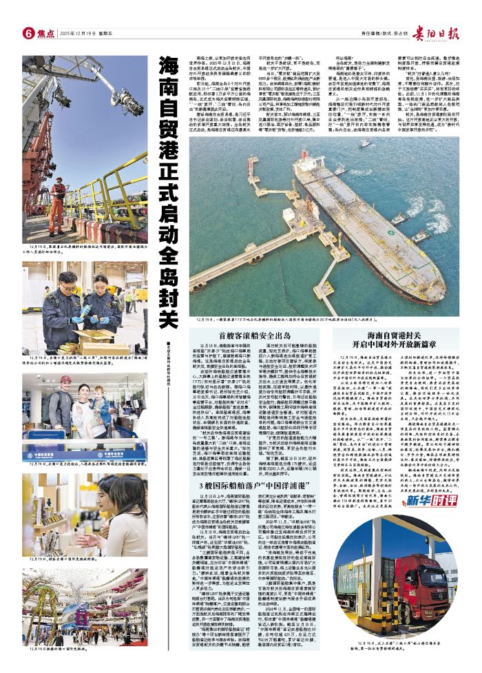 ■本版文图均由新华社提供 南海之滨,以更加开放的姿态向世界作答。2025年12月18日,海南自由贸易港正式启动全岛封关,中国对外开放迎来具有里程碑意义的标志性举措。 即日起,海南全