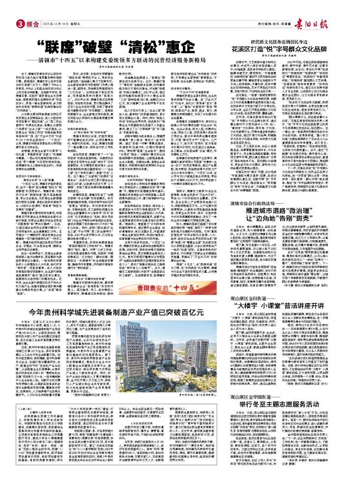 贵阳日报融媒体记者 许发顺 当下,清镇市民营经济正以前所未有的活力成为地方高质量发展的强劲引擎。数据显示,清镇市非公经济市场主体已突破7.39万个,贡献了78%以上的税收、80%以上的就