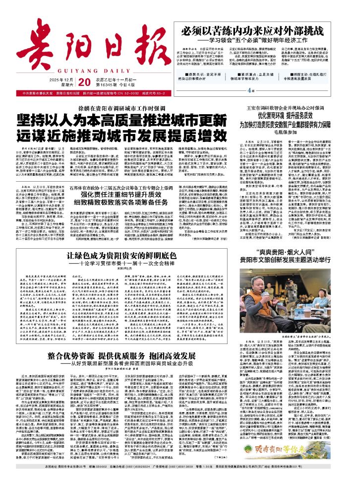 贵州日报讯(记者 曾书慧) 12月19日,省委书记徐麟到贵阳市南明区、云岩区调研城市工作。他强调,要深学笃用习近平总书记关于城市工作的重要论述,深入贯彻党的二十届四中全会、中央经济工作会议和