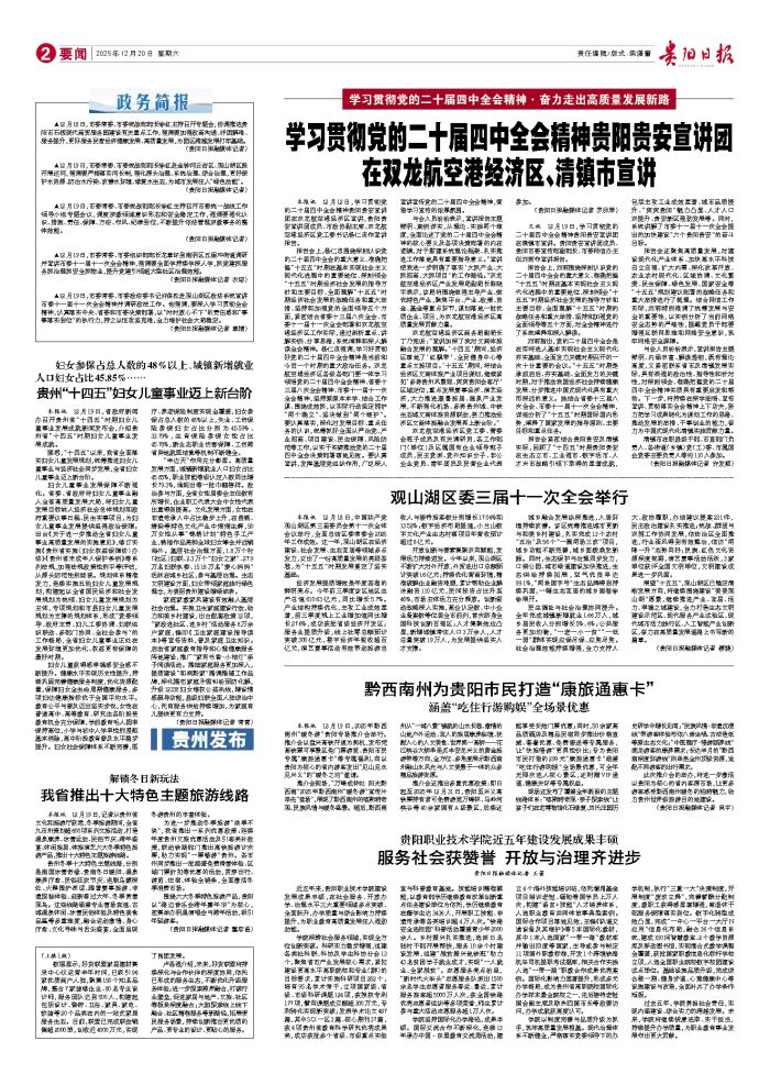 本报讯 12月18日,中国共产党观山湖区第三届委员会第十一次全体会议举行,全面总结区委常委会2025年工作成效。这一年,观山湖区在经济建设、社会发展、生态宜居等领域多点发力,交出了一份高质量
