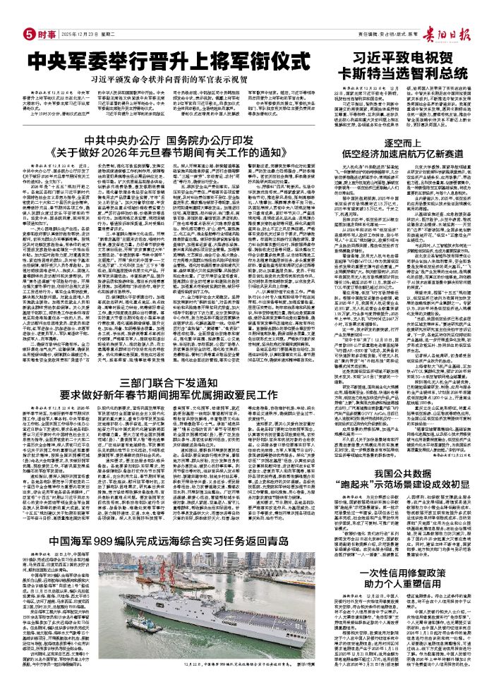 新华社北京12月22日电 2026年新年春节将至,为做好新年春节期间双拥工作,退役军人事务部、中央军委政治工作部、全国双拥工作领导小组办公室近日联合下发通知,要求各地各部队要以习近平新时代中国