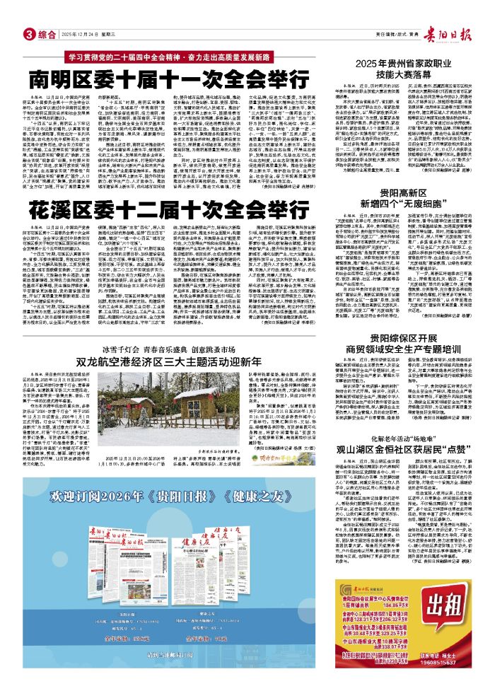 本报讯 来自贵州双龙航空港经济区的消息,2025年12月31日至2026年1月3日,该区将举行冰雪千灯会、青春音乐盛典、创意跳蚤市场三大主题活动,为市民游客带来一场集光影、音乐、市集于一体的沉