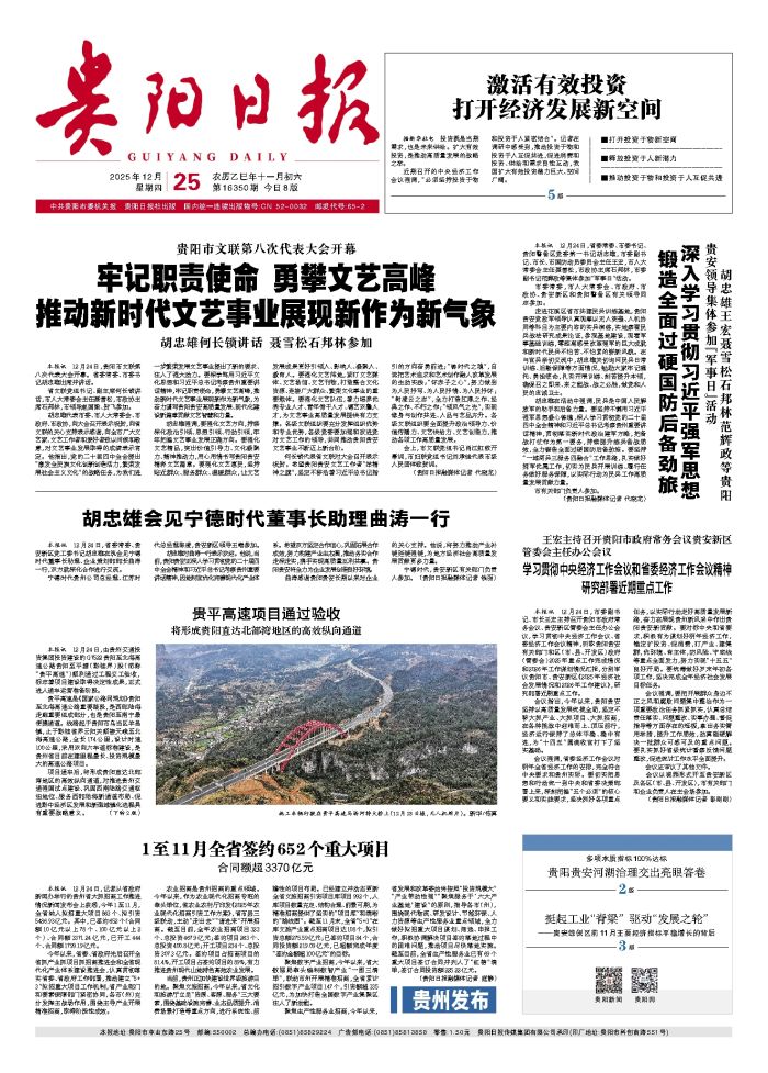 本报讯 12月24日,由贵州交通投资集团投资建设的G7522贵阳至北海高速公路贵阳至平塘(黔桂界)段(简称“贵平高速”)顺利通过工程交工验收,标志着项目建设取得决定性成果,正式进入通车运营准