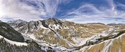 世界最长高速公路隧道——天山胜利隧道及其所在的G0711新疆乌鲁木齐至尉犁高速公路(简称“乌尉高速”)即将实现全线通车。届时,天山以北的乌鲁木齐至天山以南的库尔勒的通行时间将从7小时缩短至3小时左右。天山胜利隧道全长22.13公里,是目前世界最长高速公路隧道。图为桥隧相连的乌尉高速公路穿越天山山脉(12月20日摄,无人机全景照片)。 新华/传真