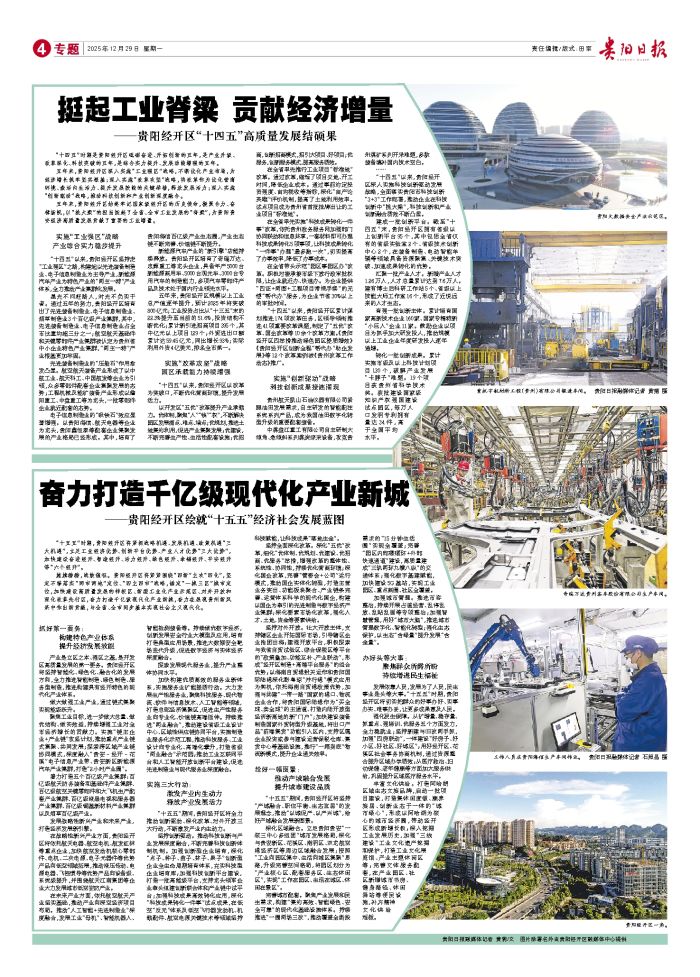 “十四五”时期是贵阳经开区砥砺奋进、开拓创新的五年,是产业升级、改革深化、科技突破的五年,是综合实力提升、发展动能增强的五年。 五年来,贵阳经开区深入实施“工业强区”战略,不断优化产业布