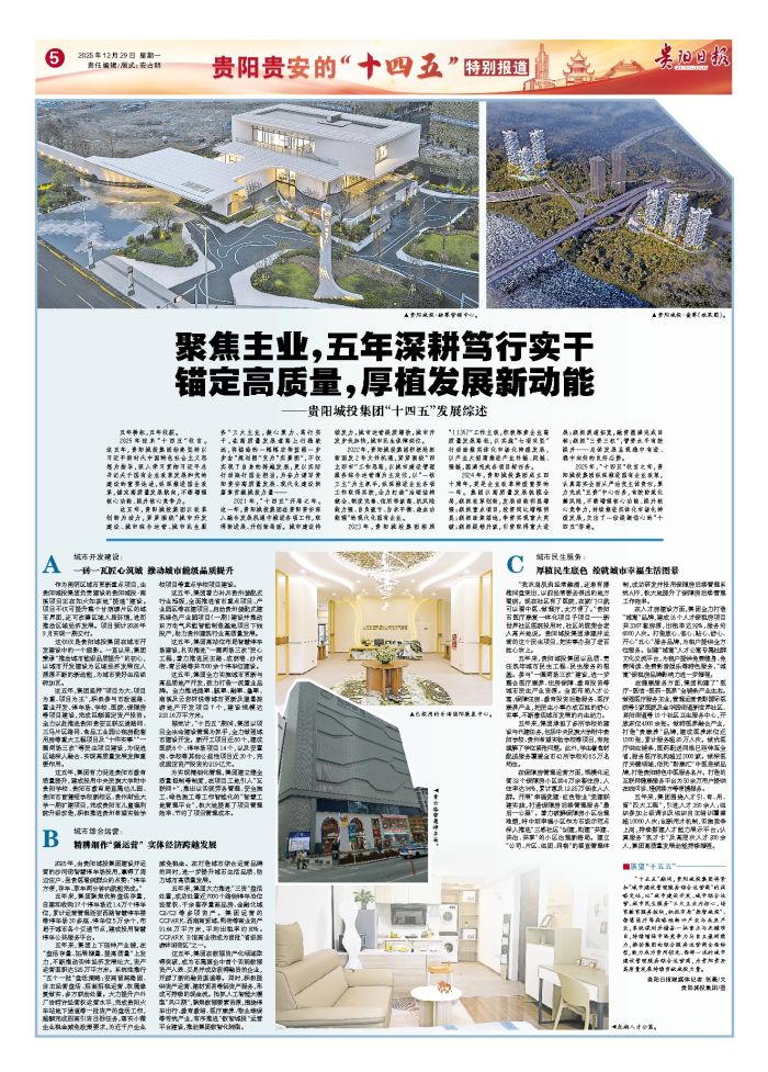 五年耕耘,五年收获。 2025年迎来“十四五”收官。这五年,贵阳城投集团始终坚持以习近平新时代中国特色社会主义思想为指导,深入学习贯彻习近平总书记关于国有企业改革发展和党的建设的重要论述