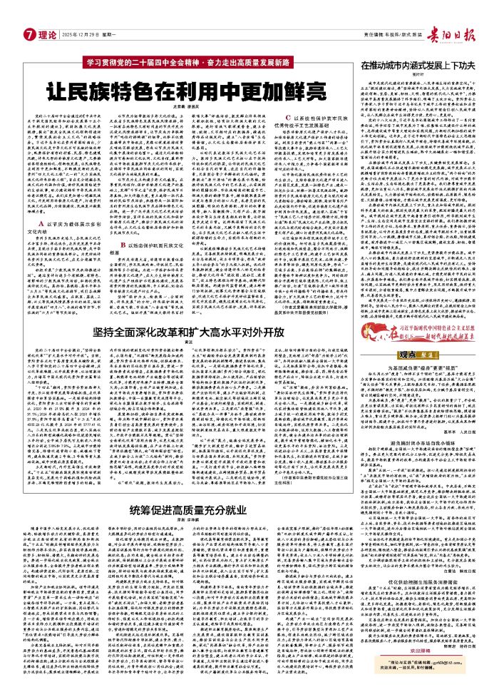 黄运 党的二十届四中全会提出,“坚持全面深化改革”“扩大高水平对外开放”。当前,贵阳贵安正处于高质量发展关键阶段,深入学习贯彻党的二十届四中全会精神,应以改革破难题、以开放聚资源、以治理