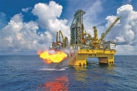 中国海油12月30日宣布,环海南岛海上气田群2025年累计生产油气当量突破1000万吨,创历史新高,较“十三五”末实现产量翻番。图为“深海一号”二期深水气井放喷测试瞬间(资料照片)。
