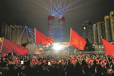 1月1日凌晨,市民、游客在花果园观看灯光秀。贵阳日报融媒体记者 徐其飞 摄