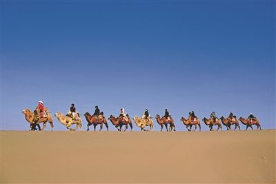 1月2日,游客在甘肃省敦煌市鸣沙山月牙泉景区游览。 新华/传真