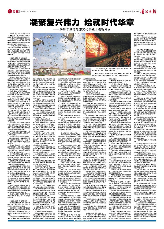 2025年,是“十四五”收官、“十五五”谋篇布局之年,也是中国人民抗日战争暨世界反法西斯战争胜利80周年。 于时代坐标中擘画蓝图,在历史回响中赓续荣光。这一年,宣传思想文化事业以其深厚的