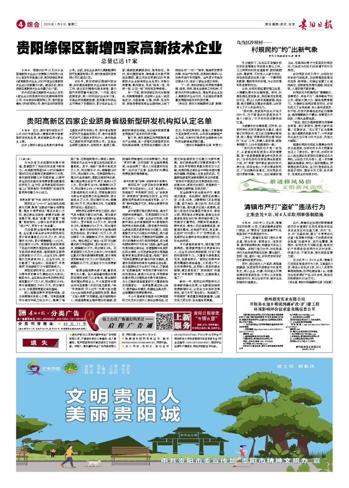 本报讯 根据2025年12月26日全国高新技术企业认定管理工作领导小组办公室发布的备案公告,贵阳综保区再添4家高新技术企业,2025年度全区高新技术企业认定数量为6家。截至目前,贵阳综保区高