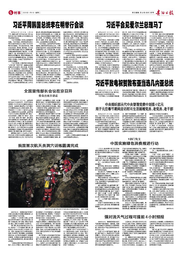 新华社北京1月5日电 全国宣传部长会议5日在京召开。中共中央政治局常委、中央书记处书记蔡奇出席会议并讲话。他强调,要坚持以习近平新时代中国特色社会主义思想为指导,深入贯彻党的二十大和二十届历