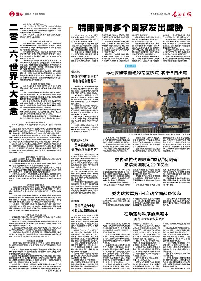 新华社萨拉热窝1月5日电 波黑“克利克斯”新闻网站4日发表文章表示,在美国总统特朗普第二任期的首年,美国不仅未明显收缩海外军事行动,反而发起了一系列攻势,成为全球不稳定因素的制造者。文章摘要