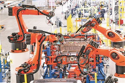 连日来,位于贵安新区的贵州长江汽车有限公司焊装车间内机械轰鸣,十余台机械臂同时作业,精准摆动、定位、施焊,短短数分钟就完成汽车焊接作业。这是该公司新增的智能化焊接生产线,目前处于调试收尾阶段,将进一步释放产能,为贵安新能源汽车产业提质增效添力。