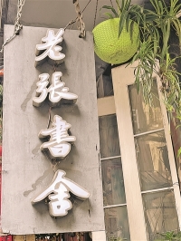 特约撰稿人 韩浩月 文/图 老张书舍位于武汉著名的文艺街区昙华林,书舍所处的小巷属于生活区,烟火味冲淡了一些文艺气息,白字勾金边的“老张书舍”镶在一张木板上,金边已经淡去,两根生锈的铁链
