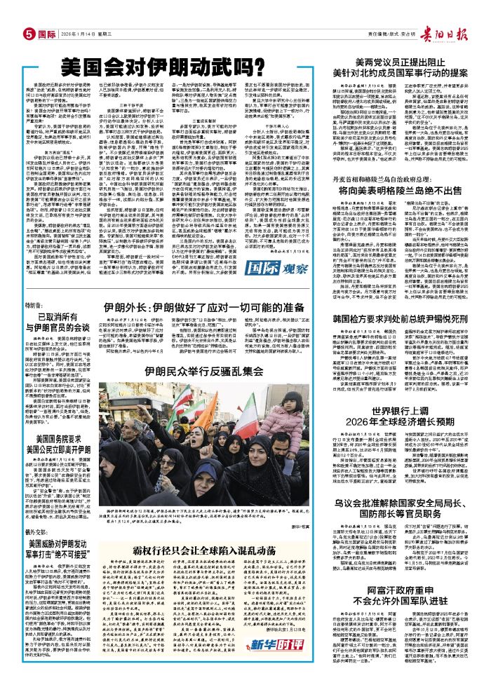 新年伊始,美国接连采取单边行动,将世界搅得不得安宁:突袭委内瑞拉,强行控制委总统马杜罗夫妇并将他们带到美国;扬言“无论以何种方式,都要得到格陵兰岛”;宣称在考虑干预伊朗局势的“强硬选项”;威胁
