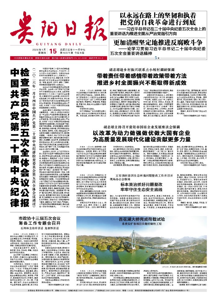 本报讯 1月14日,省委常委、市委书记胡忠雄主持召开贵阳市国有企业发展座谈会。他强调,要深入学习贯彻习近平总书记关于国企改革发展的重要指示精神和习近平总书记考察贵州重要讲话精神,落实“新年第