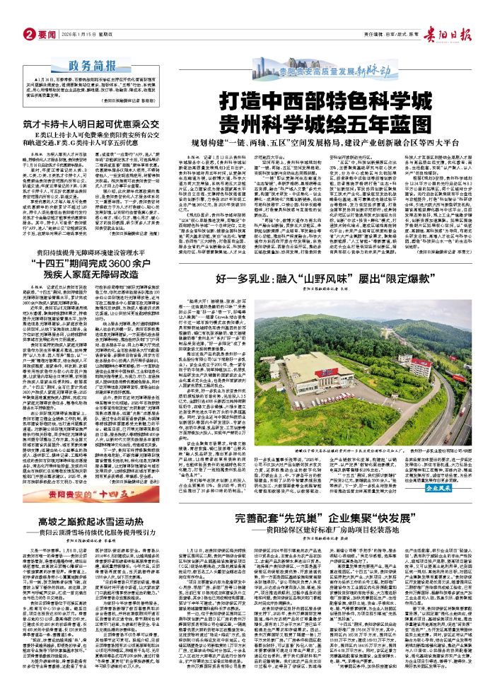本报讯 记者1月13日从贵州科学城服务中心获悉,《贵州科学城创新驱动高质量发展规划》近日出炉,贵州科学城将用五年时间,以麦架河生态廊道为链,以数博大道、科学大道为两大发展轴,系统布局五大功能