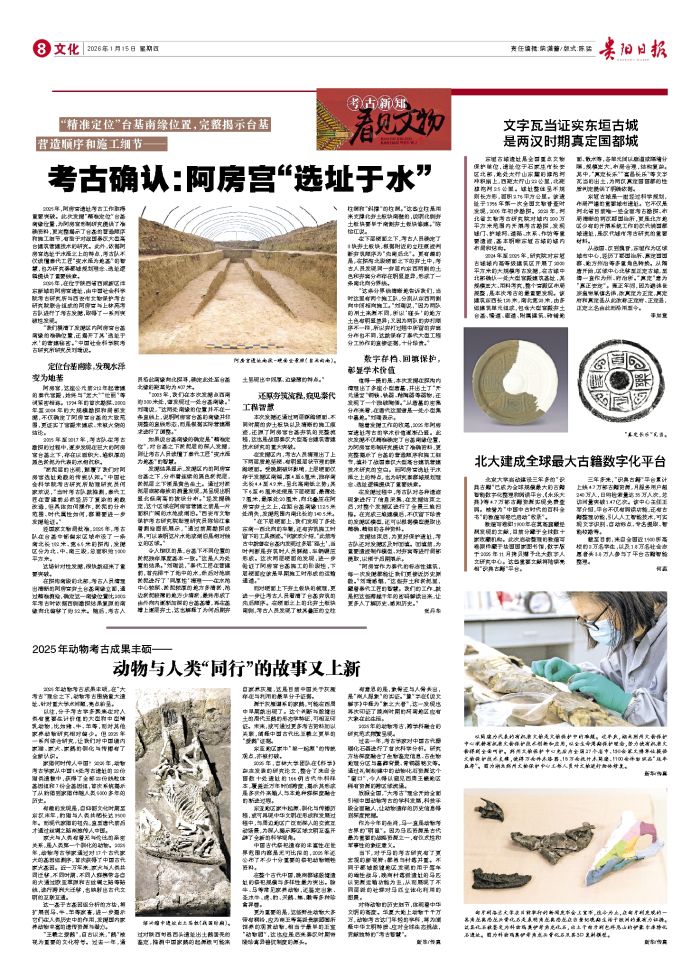 2025年,阿房宫遗址考古工作取得重要突破。此次发掘“精准定位”台基南缘位置,为阿房宫形制研究提供了准确资料,更完整揭示了台基的营造顺序和施工细节,有助于对战国秦汉大型高台建筑营建技术的研究。