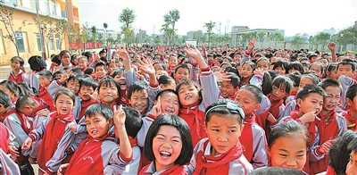 修文县第二实验小学的学生们面对镜头露出灿烂的笑脸。 胡文艺 摄