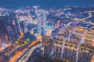 南明区花果园片区夜色璀璨。
