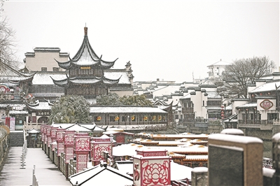 1月20日是大寒节气,多地迎来降雪。图为1月20日拍摄的江苏南京夫子庙景区雪景。 新华/传真