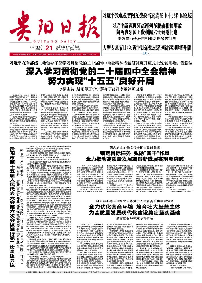 本报讯 1月19日,省委常委、市委书记胡忠雄主持召开经营主体负责人代表委员座谈会。他强调,要深入学习贯彻党的二十届四中全会精神和习近平总书记考察贵州重要讲话精神,落实全省推动经营主体高质量发