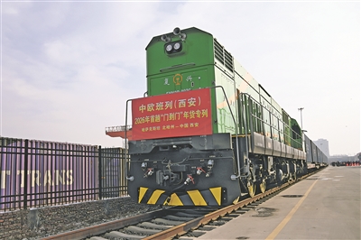 1月21日,2026年首趟中欧班列(西安)“门到门”年货专列满载着哈萨克斯坦成品粮油、蜂蜜等农产品驶抵西安。已连续开行三年的中欧班列(西安)“门到门”年货专列,实现从国外仓库发运到国内仓库收货的“门到门”运输,既有效提升货物运输效率、降低企业运输成本,又丰富春节市场供应。