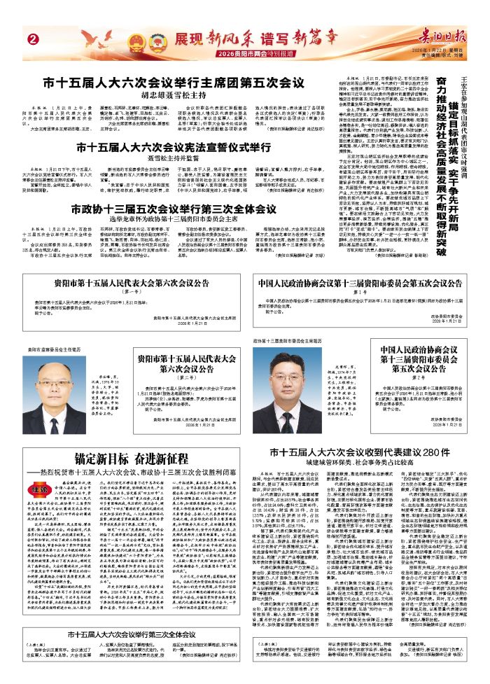 贵阳市第十五届人民代表大会第六次会议公告